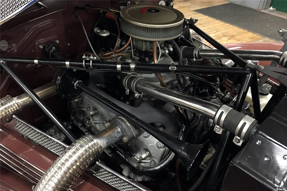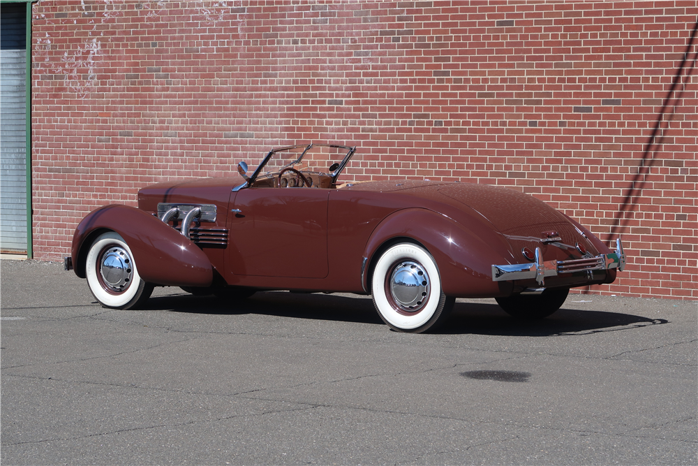 This Cord is powered by a supercharged 289cid 8-cylinder engine mated to a 4-speed manual transmission. It is also equipped with a Startix starter, correct Stromber AA25 carburetor, Air-Maze air cleaner, original mechanical and hidden electric fuel pumps, and a Cord stainless exhaust system with factory accessory exhaust cut out.