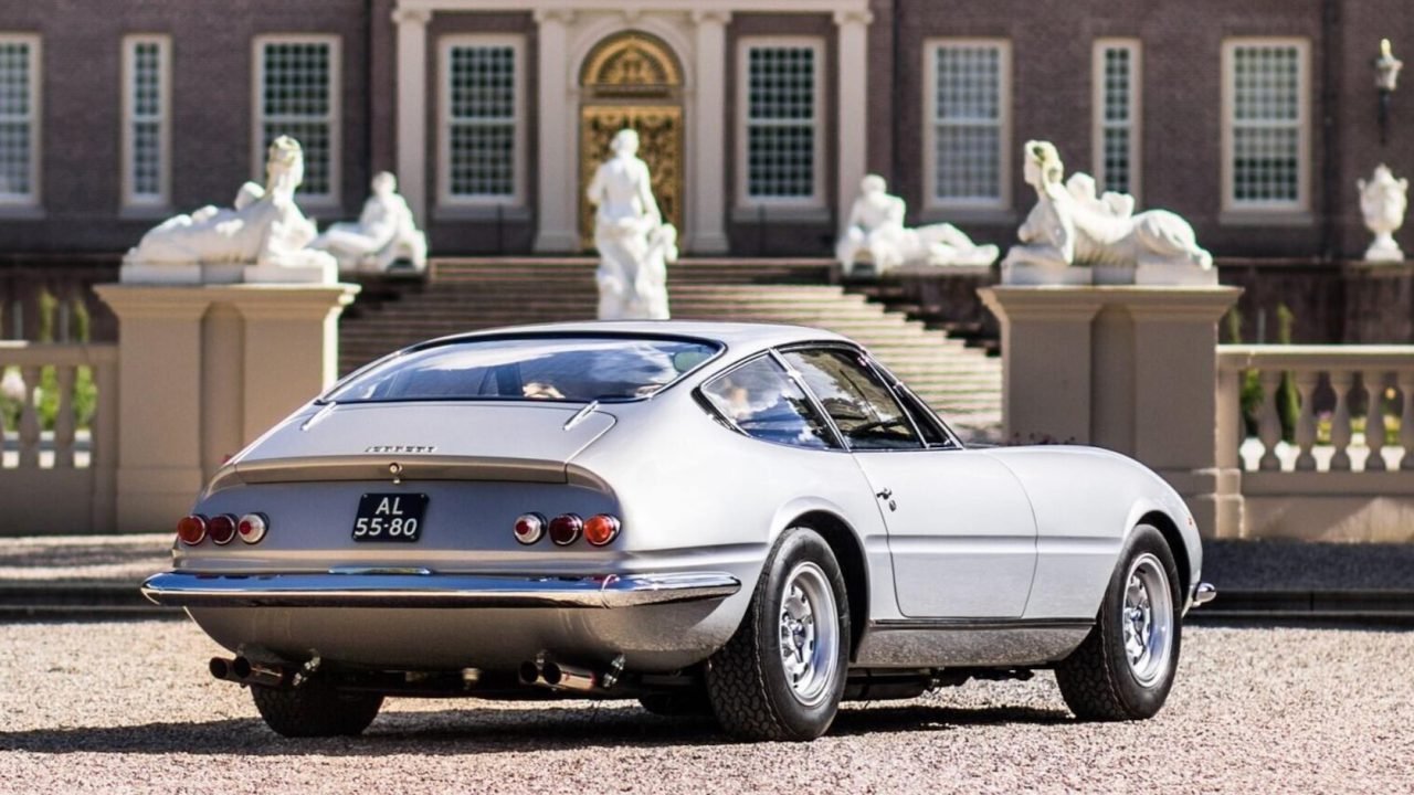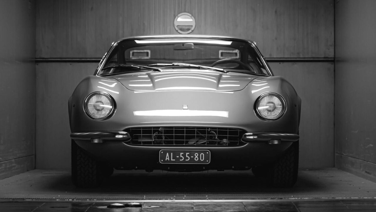 The 365 GTB/4 Daytona was intended as a successor to the Ferrari 275 GTB/4, and that’s reflected in the design of this prototype. Its tubular steel chassis carries over from the 275, and the round headlights are more reminiscent of that model than the visor-like design used on the eventual production 365 GTB/4.