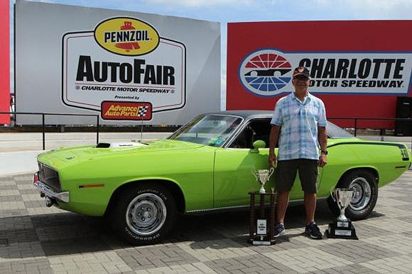 CONCORD, N.C. – John Gray’s lime green 1970 Plymouth Barracuda was as good as gold in Sunday’s Pennzoil AutoFair presented by Advance Auto Parts at Charlotte Motor Speedway, earning Walt Hollifield Best of Show honors in a hotly contested showcase of colorful classic cars, hot rods and sports cars.