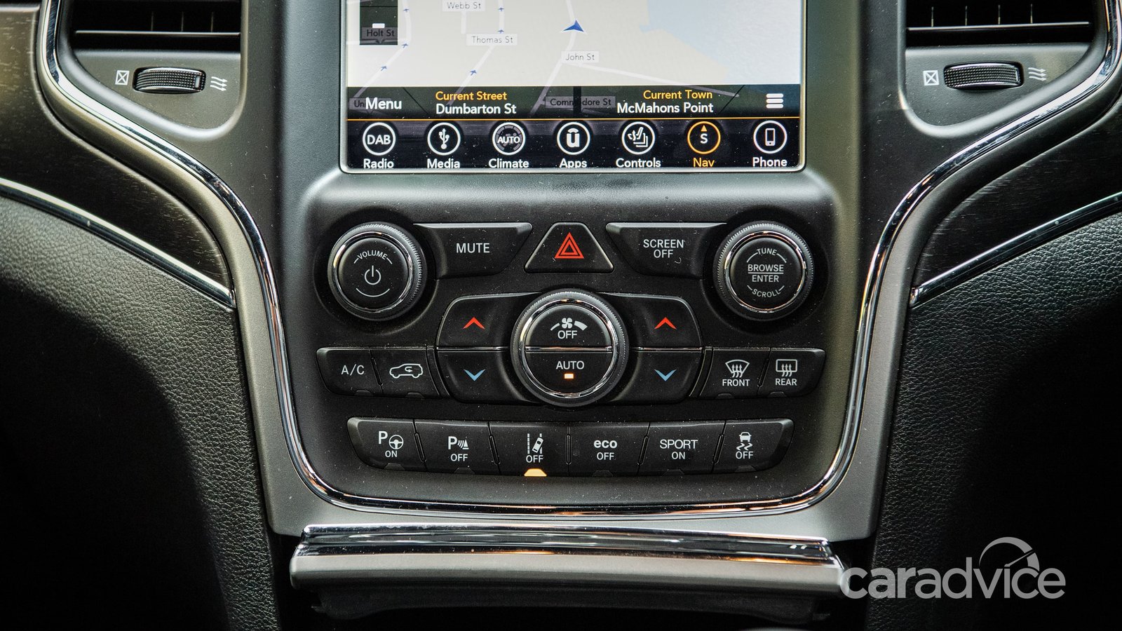 The footbrake, the single-stalk control and the ageing switchgear don’t help the slightly tired vibe. Even the large 8.4-inch Uconnect touchscreen, an upgrade over the 7.0-inch version in the base Laredo models, lacks modern definition, clarity and intuition.