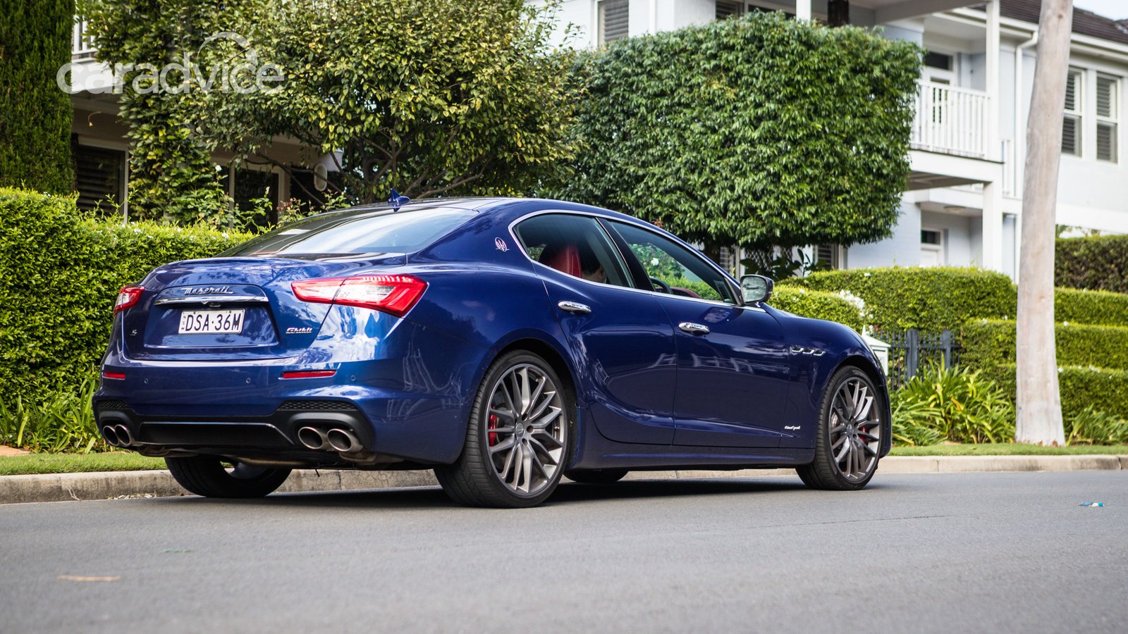That this third generation is less a direct bloodline to, and more a casual acquaintance of, the svelte ’70s and boxy ’90s Ghiblis is old muck not worth raking any further. But it’s fair to say that today’s four-door remains firmly clung to gran turismo romance while it squeezes into an executive sedan suit, its refreshed and more aggressive nose job the only real talking point in the massaged styling. In GranSport trim, it’s slightly sportier and more angular than the softer GranLusso fascia, while the rump has also copped a massage. In high-output S form, the flagship GranSport sits on 21-inch wheels as standard.