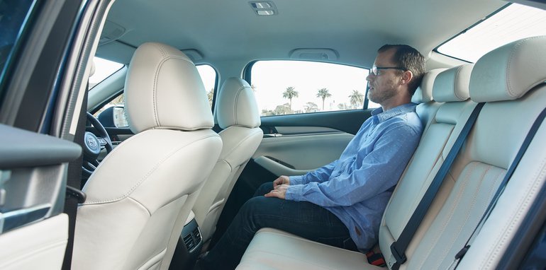 There’s superior head room up front in the Camry, though neither is short-changed, but whereas the Mazda has a naturally low roof from front to rear, the Camry has space to tuck its sunroof blind, making the rear seats of both a little less spacious than they could otherwise be.