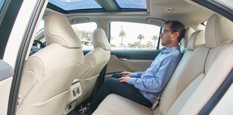 Camry goes upmarket with manual sunshades on the rear doors (although the powered rear windscreen shade of generations earlier still hasn’t returned), and though the sunroof has a full-blockout blind, it would be nice if there were a possibility of ordering the car without a sunroof at all.