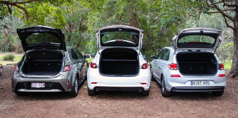 Of the trio, the Mazda comes with the most favourable combined fuel consumption claim, an admirable 5.8L/100kms figure, though it’s only 0.2L more favourable than the more powerful Corolla.