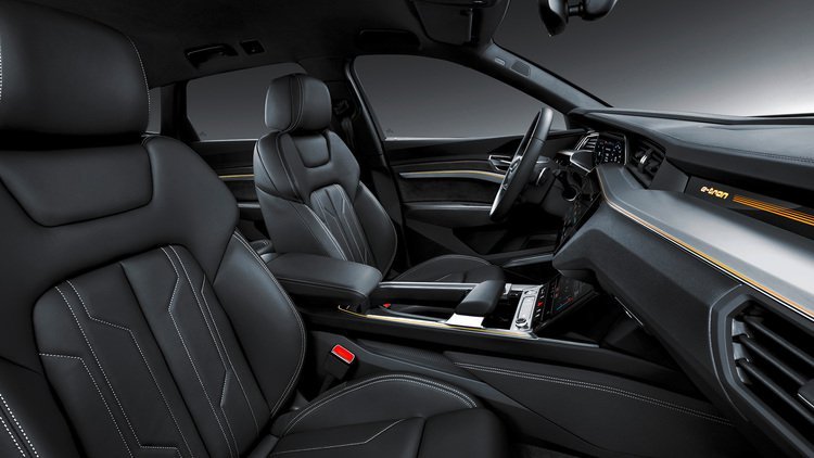 Additional design features include an e-tron logo on the charge flap and optional orange brake calipers. A set of aero-optimised 19-inch wheels are standard, wrapped in low rolling resistance 255/55 tyres.