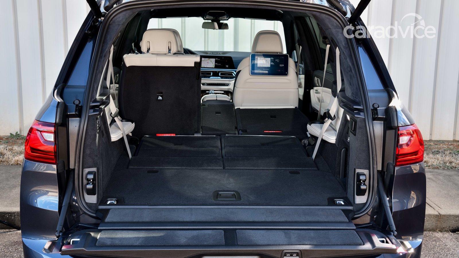 What we need is BMW Australia to demand the six-seat variant, because if you don’t need the full seven-seat layout, the two captain’s chairs in the middle row look luxurious and are particularly functional into the bargain. The electric mechanisms that move the seats around and flip them forward to allow access to the third row are quick, and the system ensures the seatbacks of the second row won’t drop into (and potentially damage) the backrest-mounted screens affixed to the front seats. Clever.