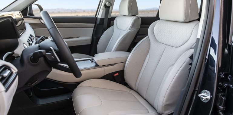 Inside, the Palisade asserts its flagship status in Hyundai’s range with its unique and upmarket dashboard layout, along with available technologies and trims.