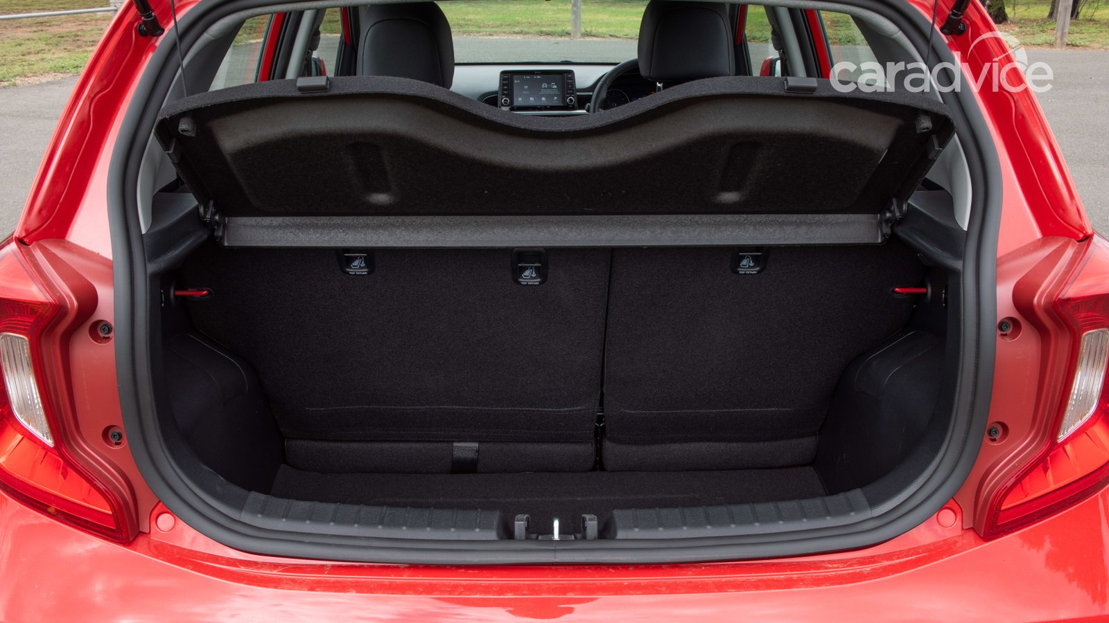 Behind the second row of seats is a 255L luggage area, which is bigger than both the Mazda 2 and Suzuki Swift – which are in the class above, mind you – expanding to a rather impressive 1010L with the back seats folded. There’s a pretty big hump where the boot floor meets the seat back, though you can fit plenty of stuff nevertheless.