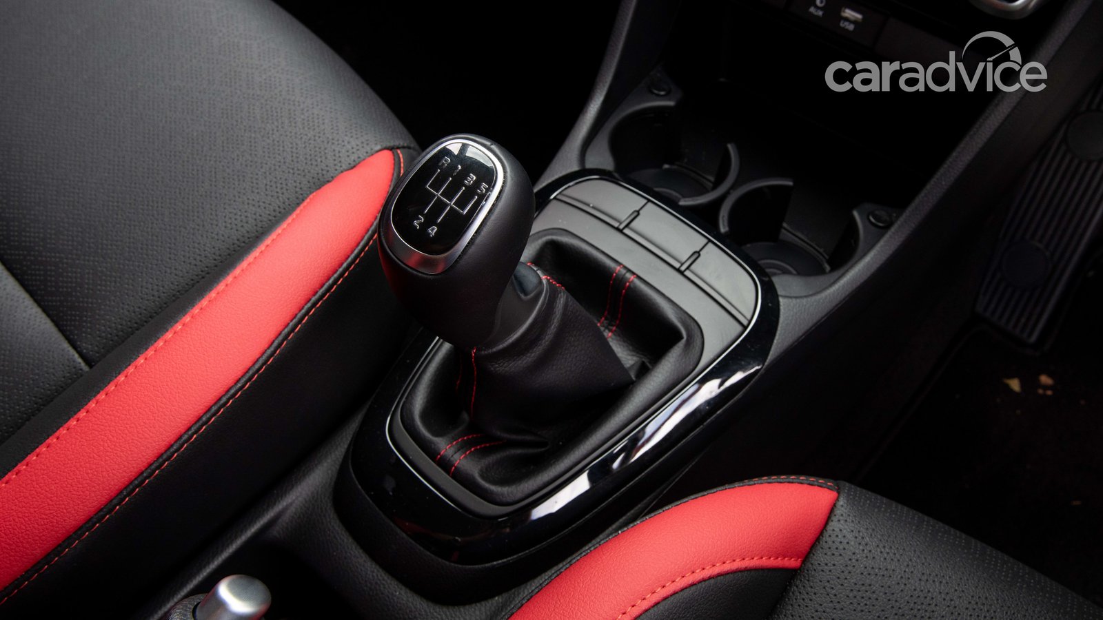 Well, if you’re familiar with the GT-Line variant, there’s not much separating the GT in terms of equipment. Like its non-turbocharged subordinate, the GT gets 16-inch alloy wheels, dusk-sensing halogen projector headlights with LED daytime-running lights, LED tail-lights, a sports body kit, dual tailpipes, a 7.0-inch touchscreen infotainment system with Apple CarPlay and Android Auto, ‘premium’ leatherette trim for the seats (with red accents), steering wheel and shift knob, along with alloy sports pedals and electric folding exterior mirrors with integrated LED indicators.