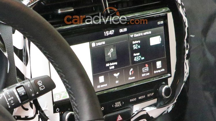 Although the body is just as camouflaged as last time we saw the car, the latest batch of spy pictures includes a few pictures of the interior. The central touchscreen shows the battery on 92 per cent and a range of 437km, which suggests the car will do around 500km on a full charge.