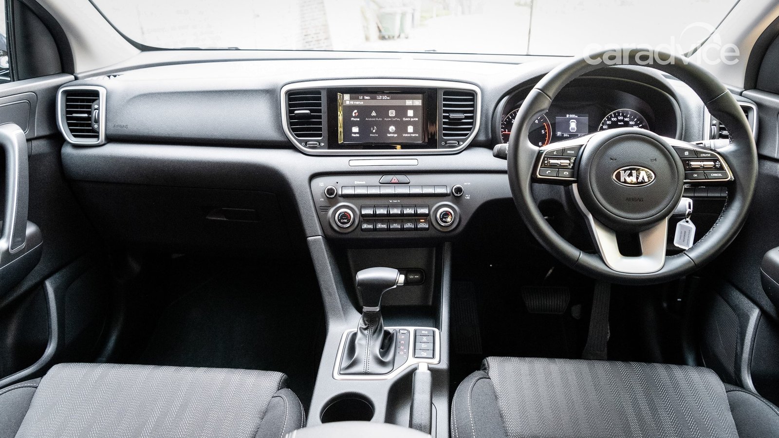 Up front, there are a lot more niceties, with a neat driver-centric dash and a stack of those metallic highlights that offer a touch of class to the base-trimmed Sportage. Even the control knobs are knurled, albeit in rubber, and while the 7.0-inch infotainment screen is down an inch in size on the unit found in the Si Premium grade and up, it’s got improved clarity and counts Apple CarPlay and Android Auto as standard.