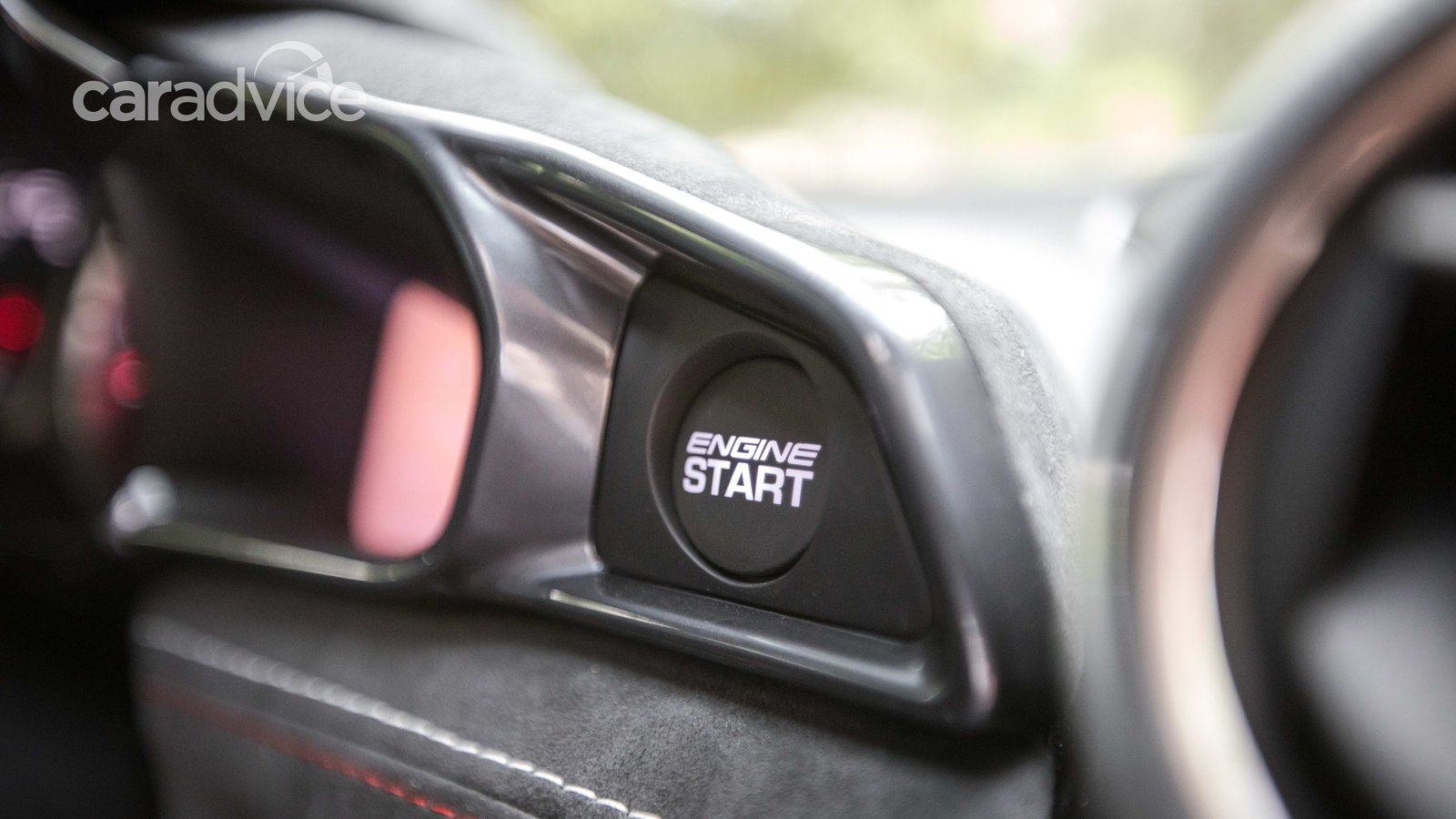 Inside it’s no spartan racecar fit-out for auto-masochists, but instead the conspicuous driver-centric purpose is tempered somewhat with lashings of Alcantara and real carbon-fibre, with plenty of neat twin stitching along the seats and instrument panel. Plus, a good smattering of aluminium conspicuously present in the face vents, the gear knob and the pedals.