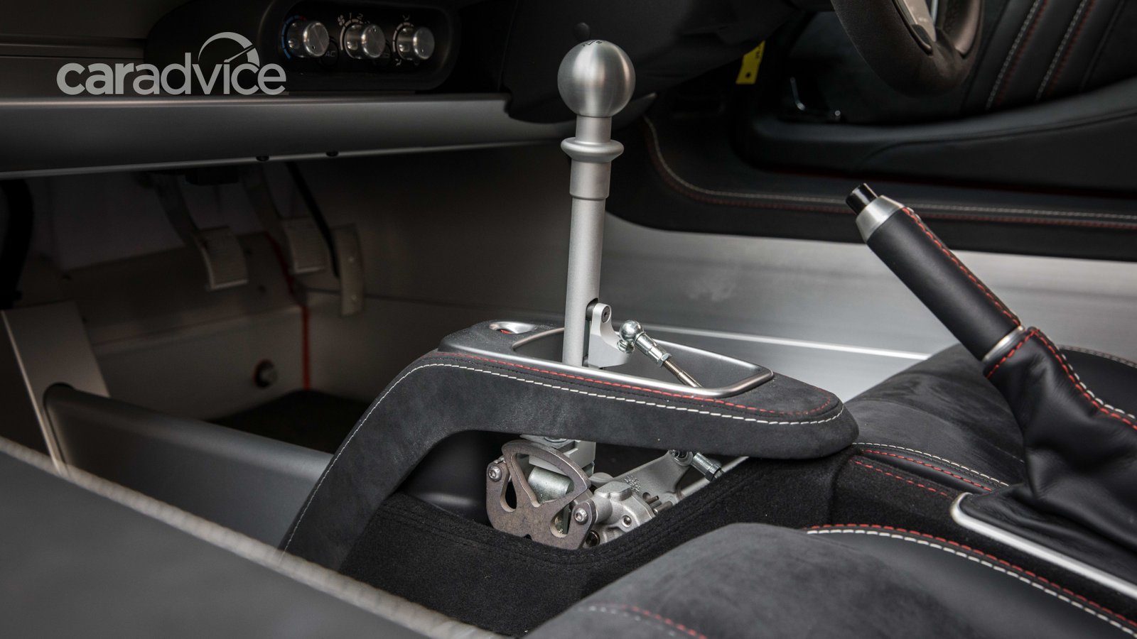 Pressing the starter button elicits a low rumble just behind your ears. It’s not particularly loud at idle (thanks to some exhaust baffles), but it’s menacing all the same – a hint of what’s to come. The cabin heats up quickly too, certainly in the middle of a Sydney summer. Blessed be the gods of air-conditioning.