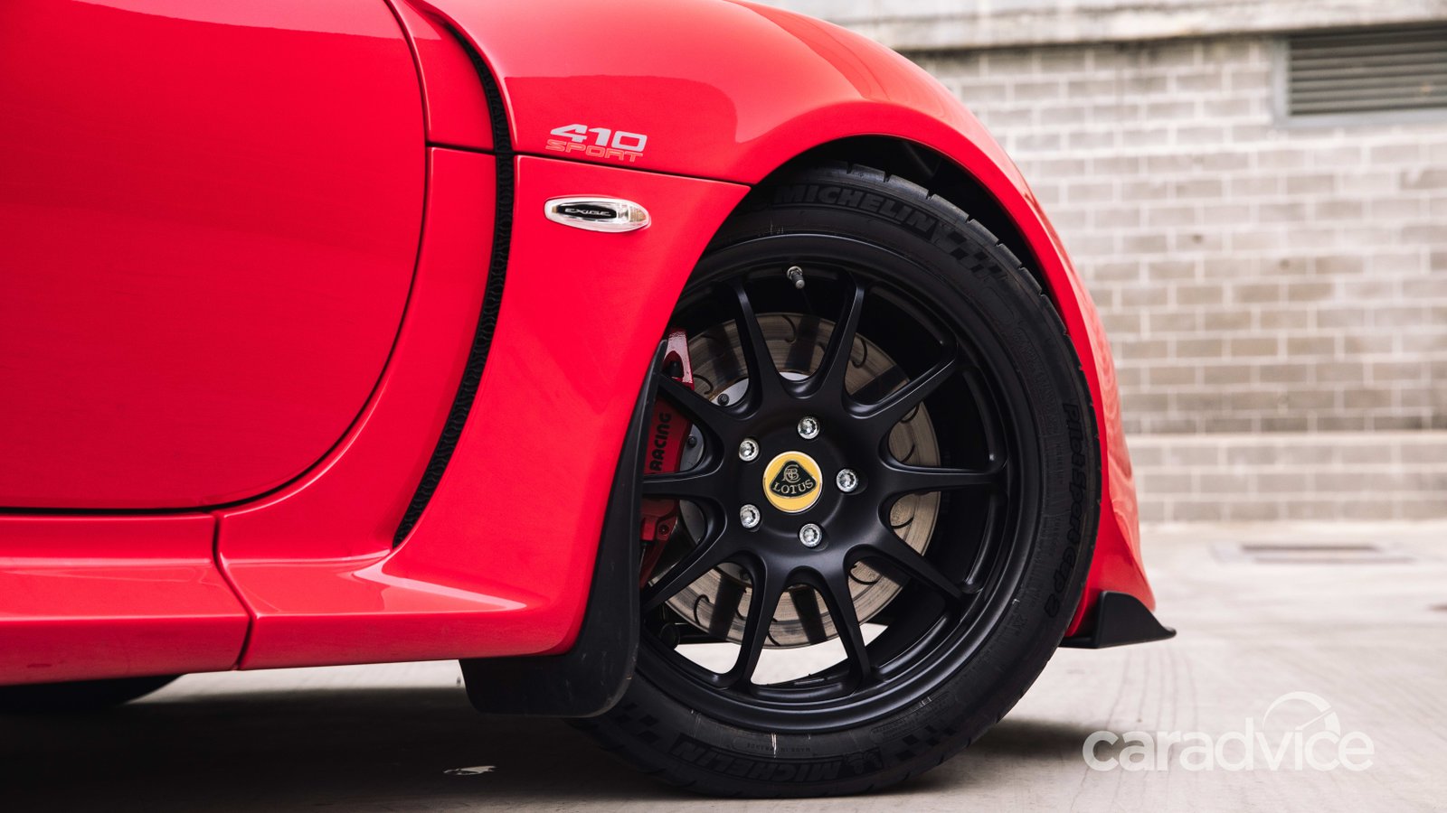 And what an engine it is. Underneath that lightweight tailgate lurks a Toyota-sourced 3.5-litre V6. It’s all aluminium and hanging off the side is a big fat Edelbrock supercharger. As a package, it’s good for 305kW (410hp on the old scale, hence the name) and 420Nm of torque. Considering the Exige has a kerb weight of just 1108kg, it’s no surprise the Lotus can sprint from 0–100km/h in just 3.4 seconds. It’s seriously quick.