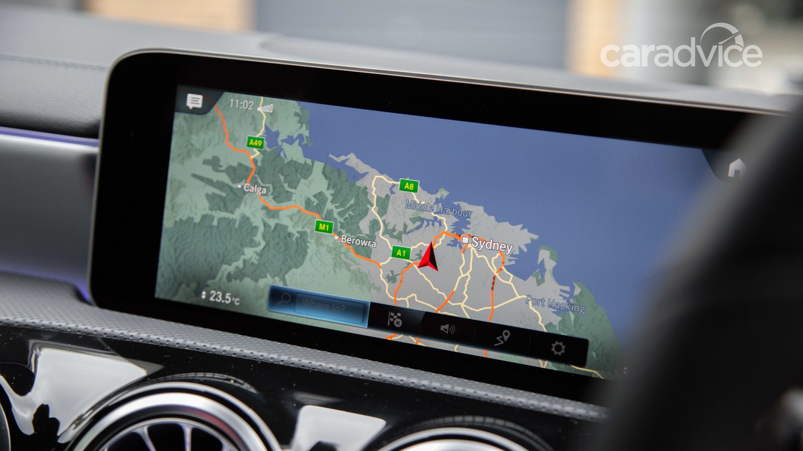 With full online capabilities not yet available in Australia, your A-Class can’t yet tell you the weather forecast or help during your pub-trivia night. But you can request changes to the configurable ambient lighting (if fitted) and cabin temperature, ask her about average fuel consumption, or ask for petrol stations to be located and followed by guidance.