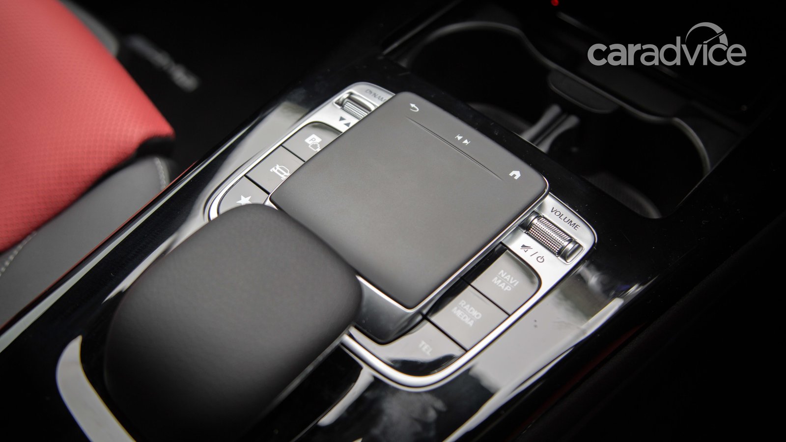 Interestingly, the A200’s standard black man-made leather seats provided an extra degree of comfort over the red/black two-tone leather seats available as part of the $3190 AMG Exclusive Package – offering better under-thigh support even though both have extendable cushion bases.