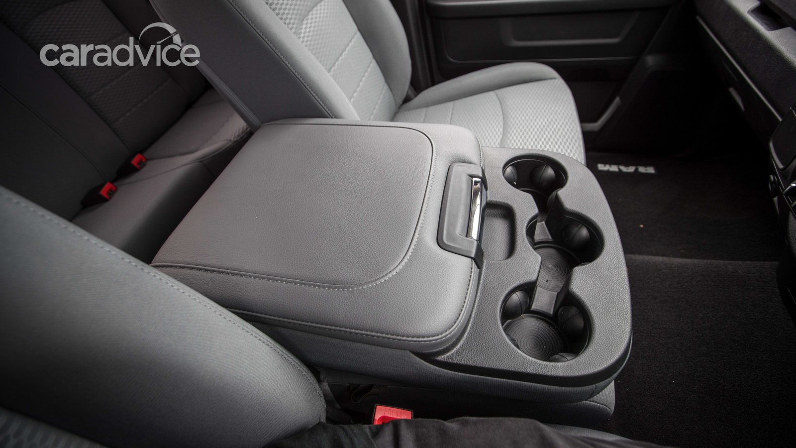 The back seat space in the Laramie is like a passenger car, but the back seat space in the Express is by no means cramped: it’s equivalent to the HiLux and Ranger et al, but with the benefit of the massive ute tray.