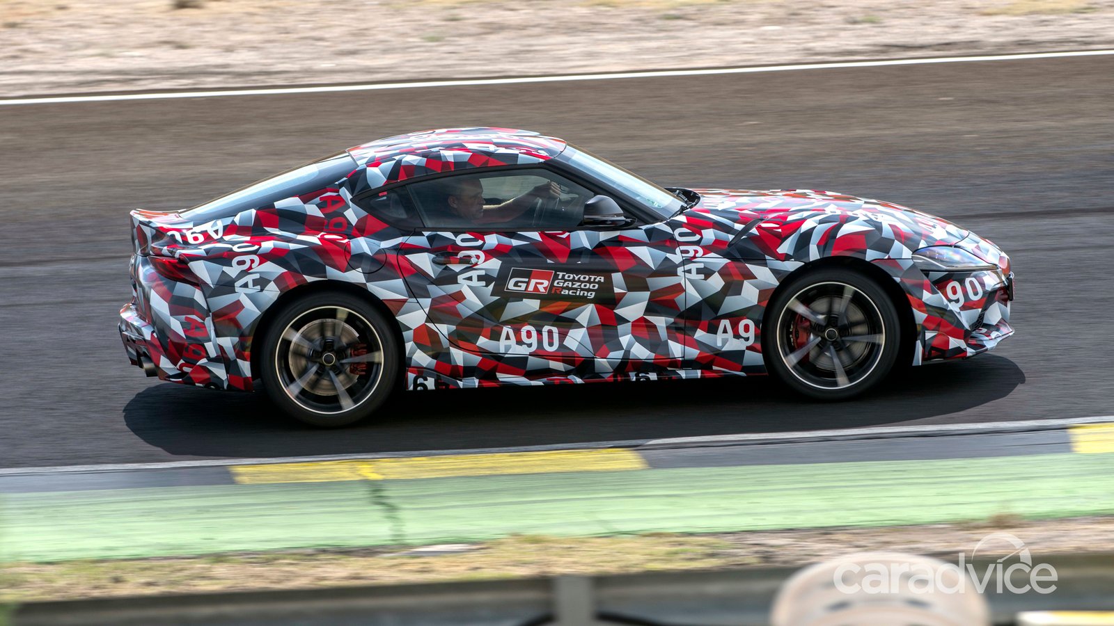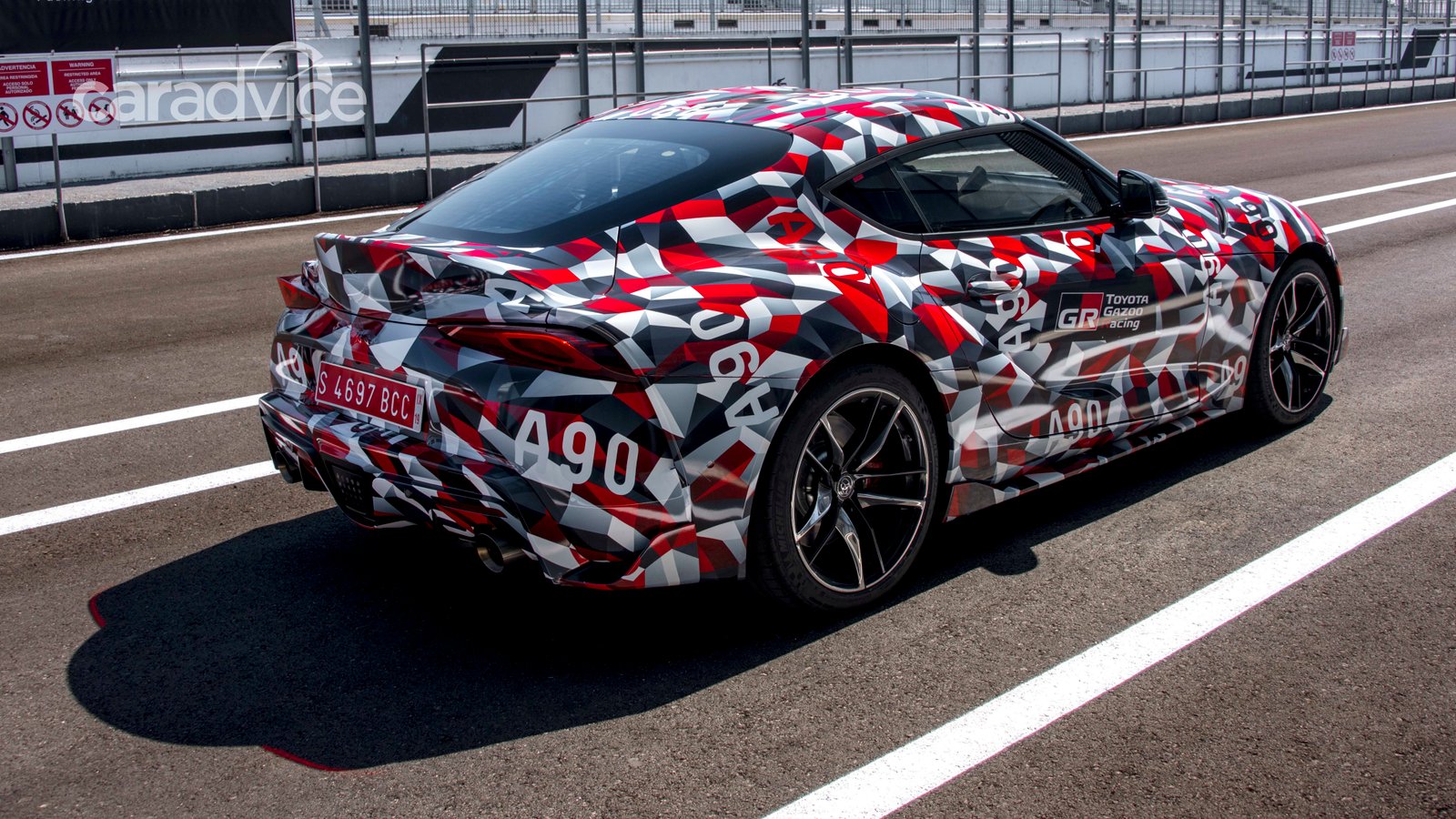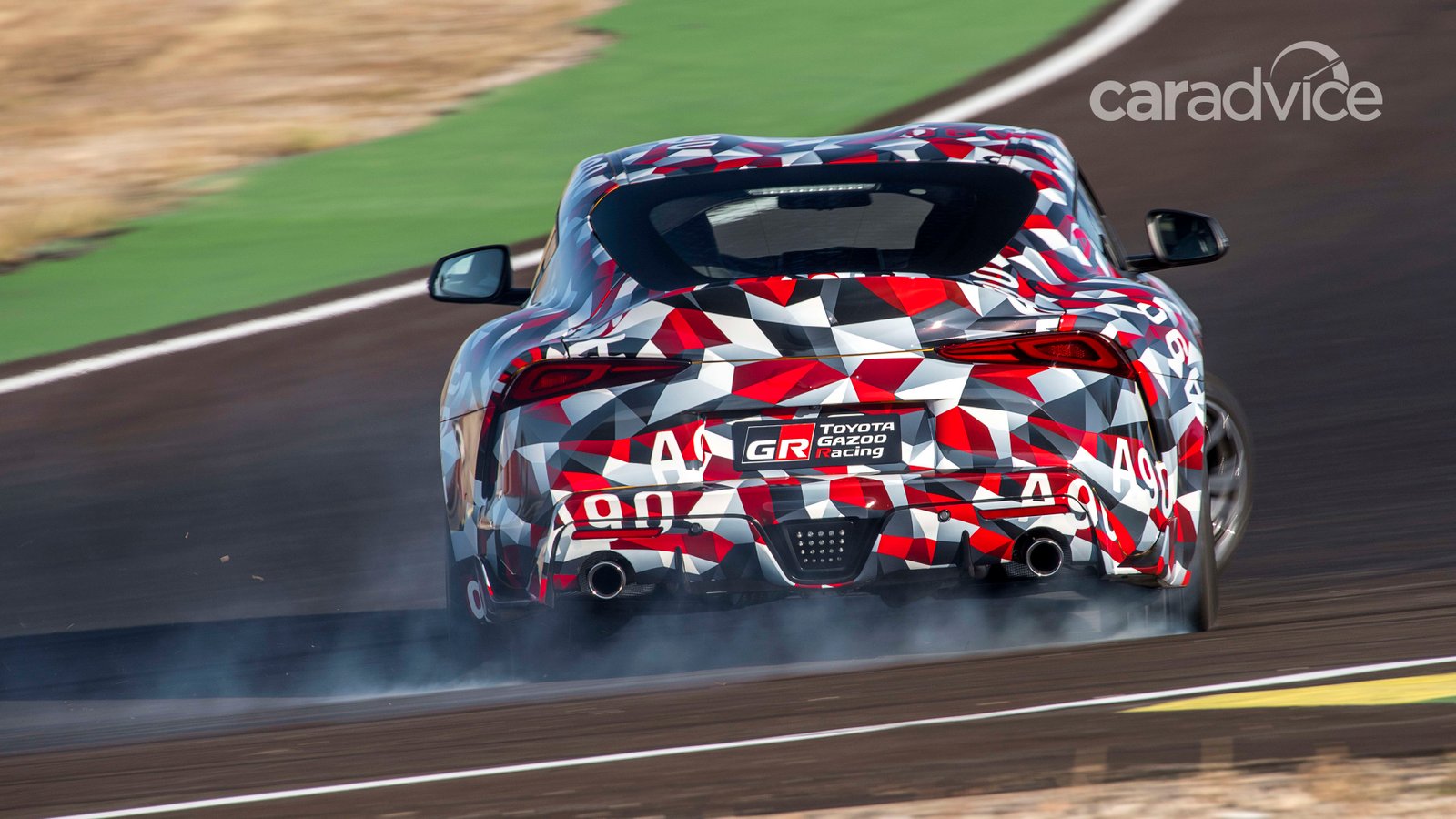While the vehicles still had a camouflage wrap, we’ve knocked together a computer-generated image to give you an idea of the design beneath the wrap. It looks damn good – even down to the traditional Supra branding on the rear of the car.