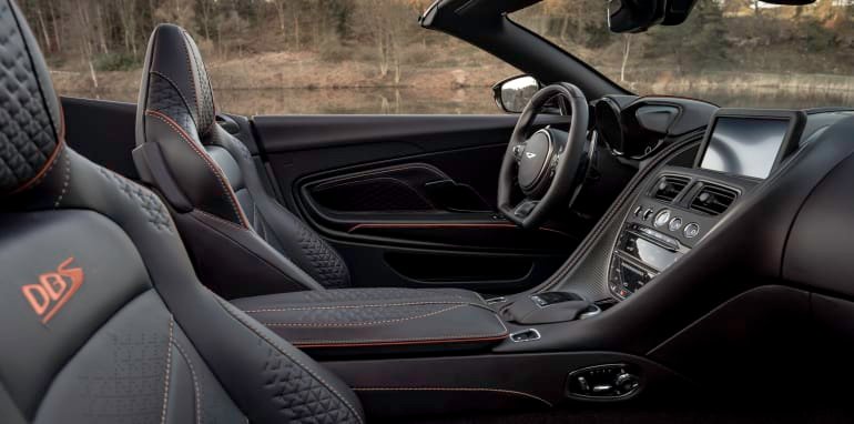 As with other Aston Martin models, a high degree of customisation is possible with options including a carbon-fibre finish for the front windscreen frame and carbon-fibre interior trim.