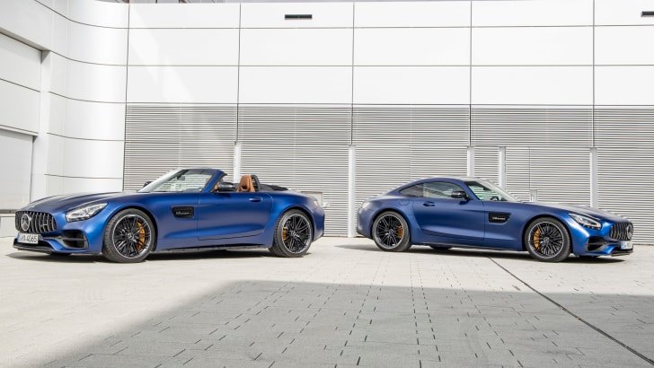 Jumping to the GT C, available in Coupe and Roadster guise, bumps power to 410kW and torque to 680Nm. Compared to the GT S it gains AMG performance seats and an Alcantara-trimmed steering wheel inside.