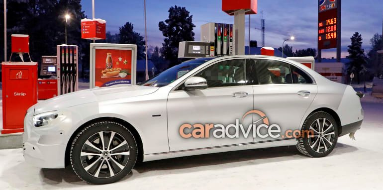 The facelifted Mercedes-Benz E-Class sedan has been photographed up close and personal at a petrol station during cold weather testing in Sweden.