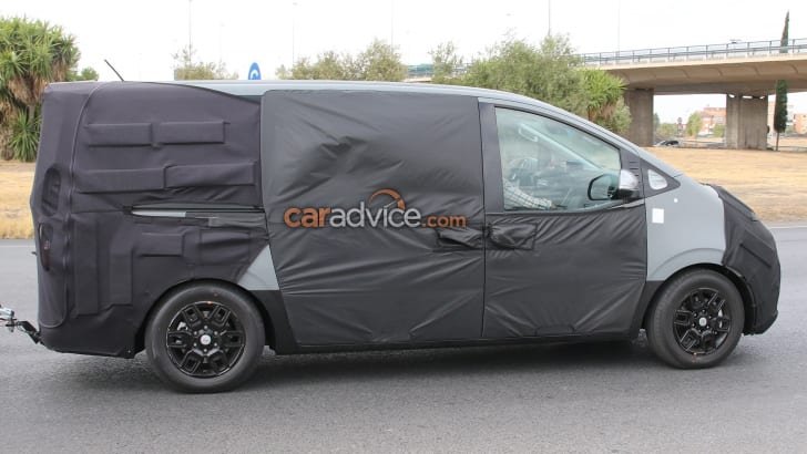 Earlier photos of heavily-camouflaged development mules showed a low-roof people-mover from the Korean car maker, leading to speculation there could be a more pronounced split between people-mover and commercial models.