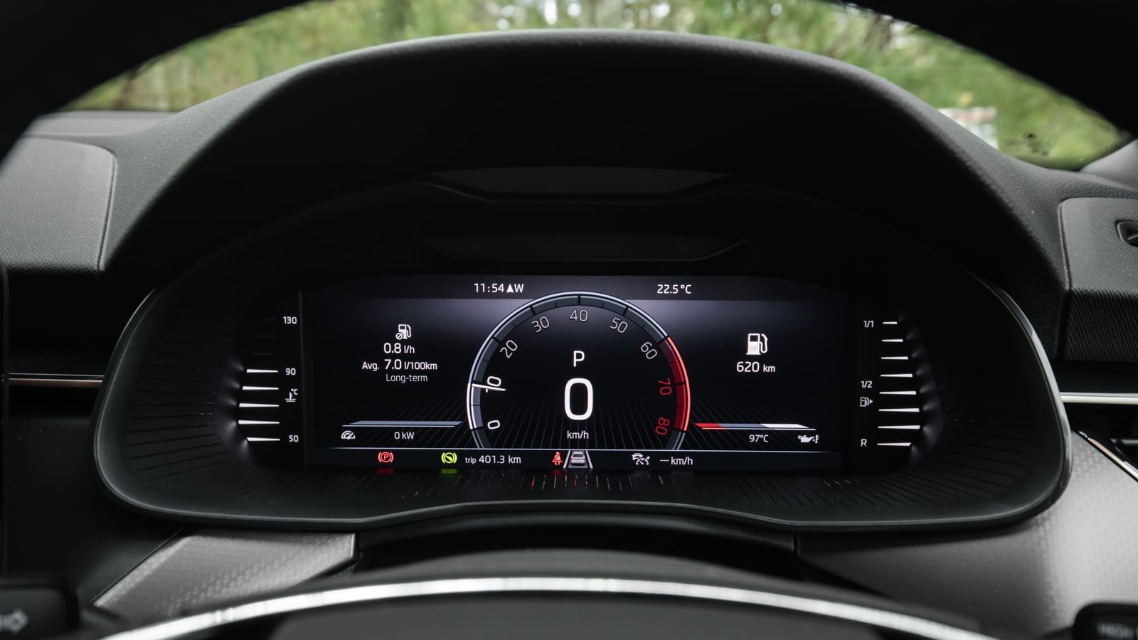 A 9.2-inch colour touchscreen hosts Skoda’s excellent infotainment system. It’s loaded with satellite navigation (in this top-of-the-range Signature specification) as well as wireless Apple CarPlay and Android Auto. Missing in action is DAB+ digital radio, a mild annoyance.