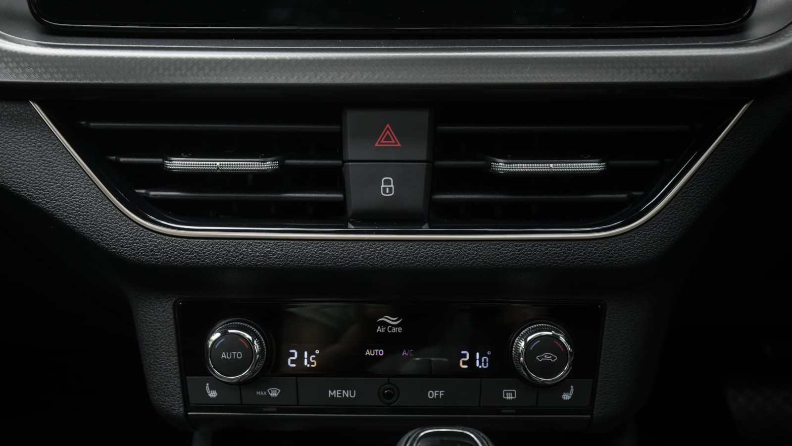 The touchscreen controls a number of critical functions, and not always in the most intuitive way. For example, there are nice dials for setting the cabin temperature, and yet fan-speed controls are nestled inside the Kamiq’s operating system and require a couple of touch inputs to effect change, which is fiddly while on the move.