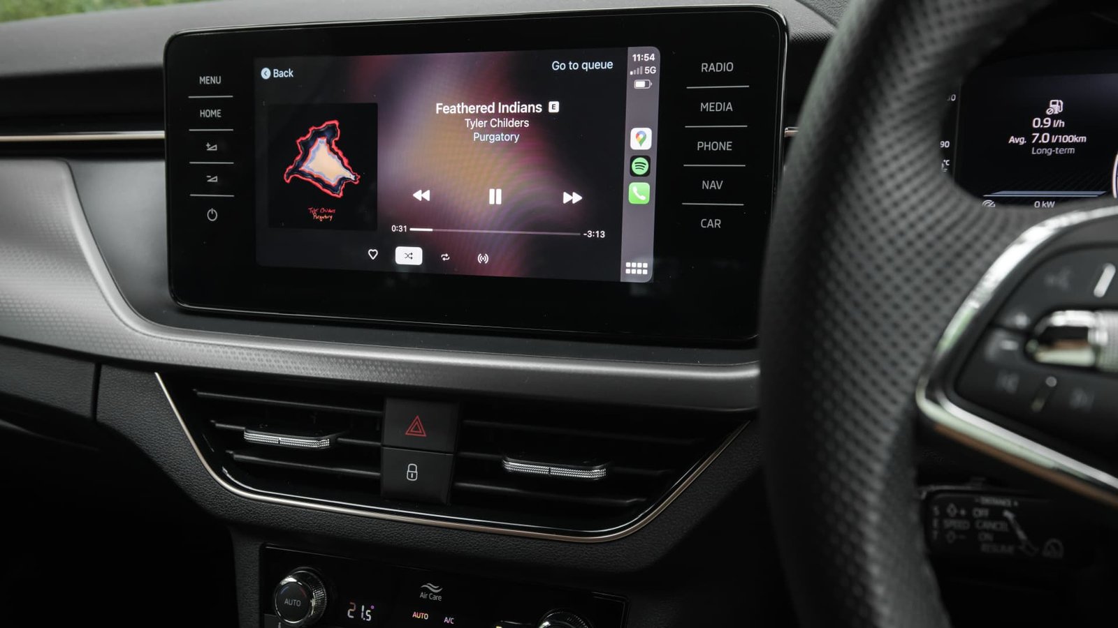 The screen is crisp with sharp graphics, while CarPlay works seamlessly, firing up – wirelessly – from the moment you step into the Kamiq.