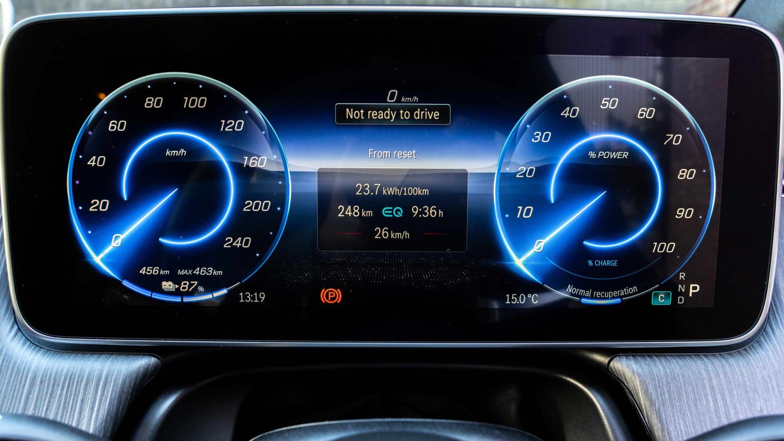 Actually, it’s only silent when required because one of our favourite features are the EQE’s Sound Experience options, which play a synthetic noise through the stereo speakers and outside according to driving style.