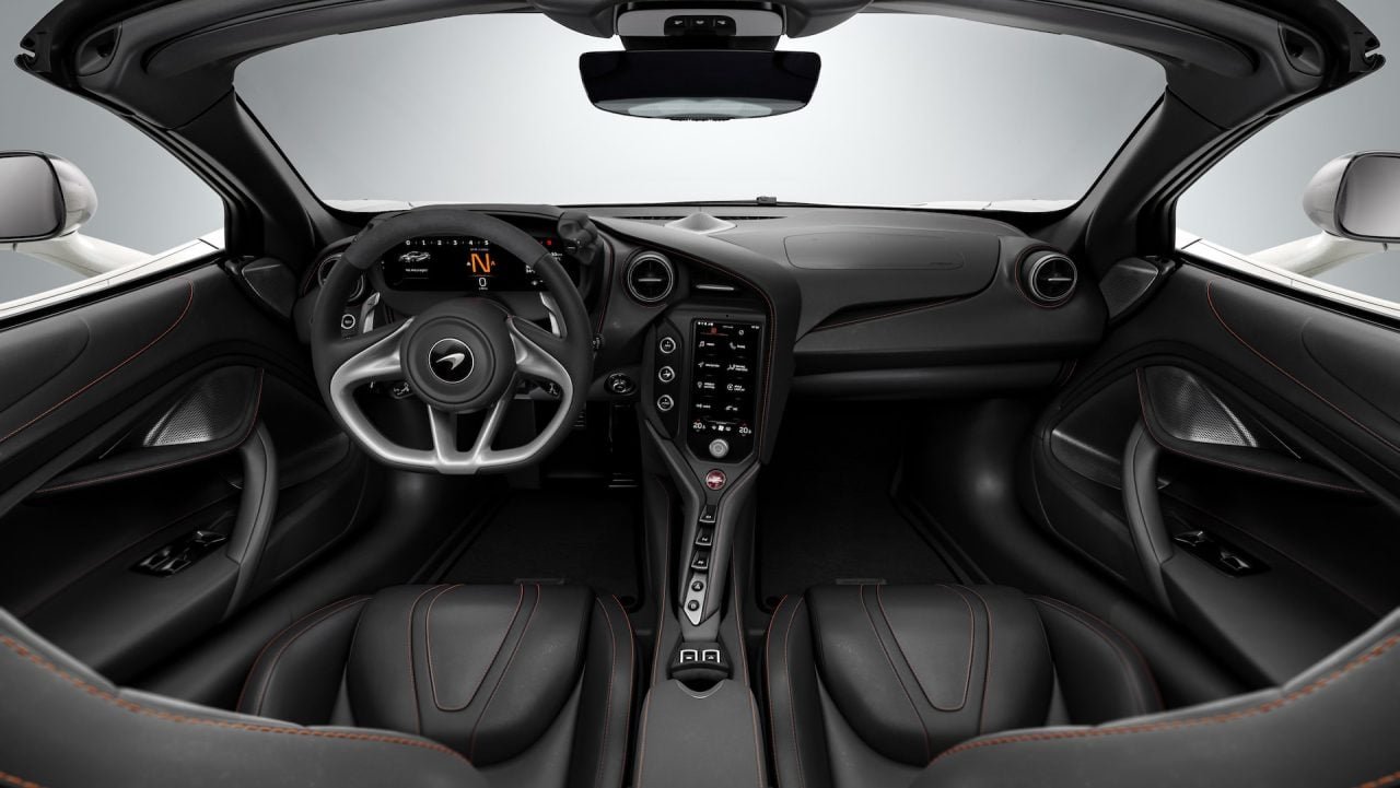 A 7-speed dual-clutch transmission with shorter gear ratios, quicker shifts, and rev limit downshifts helps make the car faster, as does a 15% shorter final drive ratio. Another reason is lighter weight. McLaren says it cut about 66 pounds out of the car versus the 720S and it weighs in with a curb weight of 3,062 pounds for the coupe and 3,170 pounds for the Spider. That makes it the brand’s lightest series production car (McLaren also offers more performance-focused models that could weigh less).