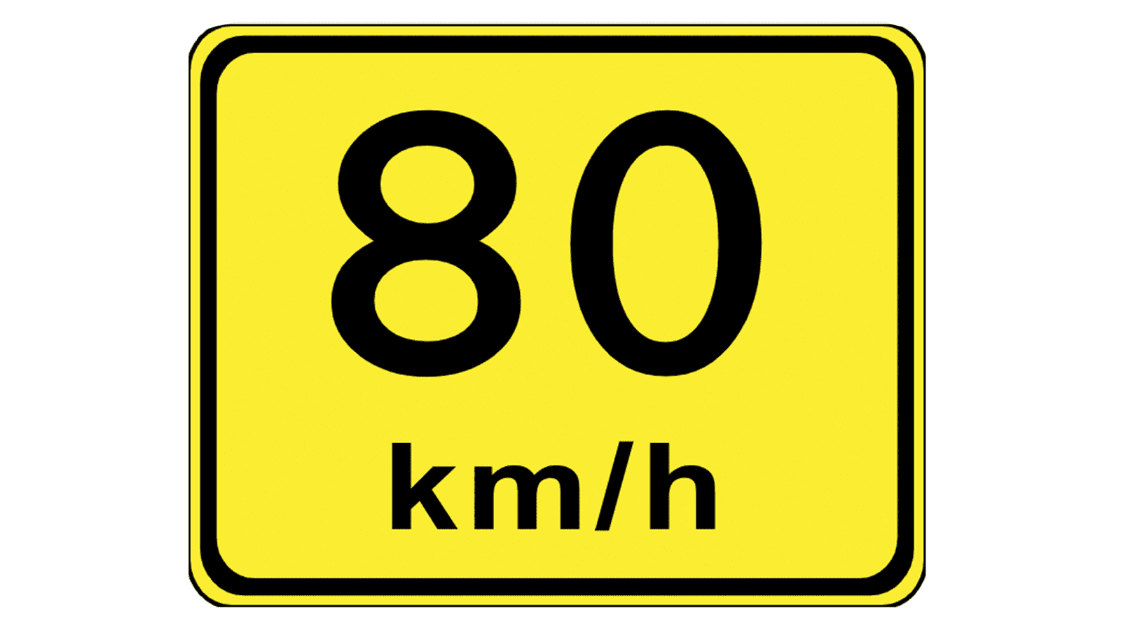 ANSWER: c) Yellow speed signs show the recommended speed limit for a corner or curve in the road. While this speed limit is not enforced, it dictates the recommended maximum speed limit for a particular stretch of road in good conditions.