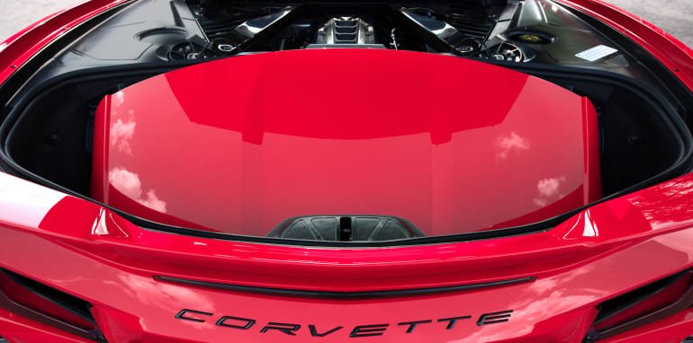 The C8 is larger and heavier than nearly all of today’s mid-engined cars, but its generous dimensions yield impressive passenger and cargo space.