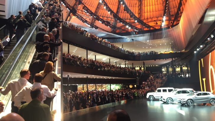 You didn’t need to look far to spot a metaphor for this year’s Frankfurt auto show — and perhaps a European industry. You just had to look up.