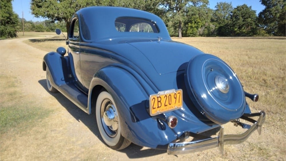 A Washington Blue exterior finish, wide whitewall tires, chrome brightwork, and a hood ornament give this nearly-90-year-old coupe a sense of style and presence. It went through a frame-off restoration about three years ago and comes with a rear-mounted spare tire, an AM radio, and a rumble seat. This coupe is being offered by a private seller in Rockdale, Texas with a clear title.