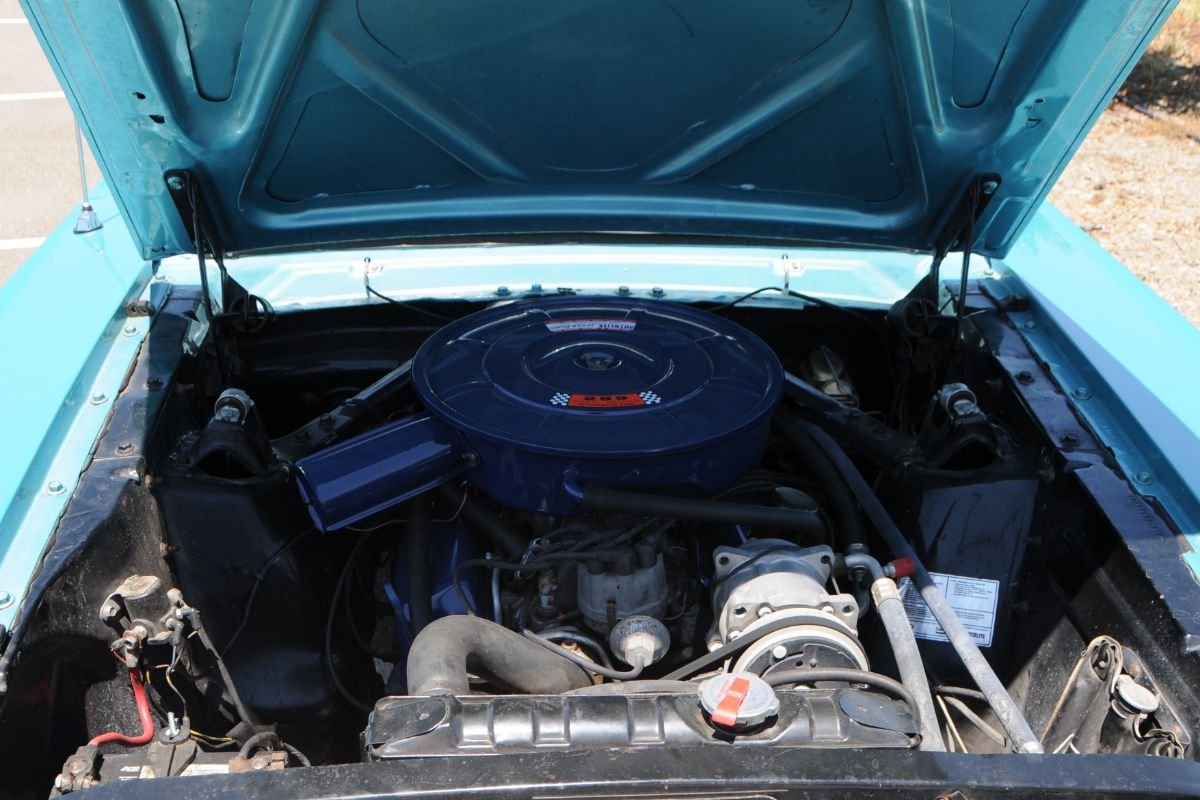The 225-horsepower 289 small-block (A-code) was rebuilt in 2004 under prior ownership. It is equipped with 1967 valve covers, newer roller rockers, and a newer four-barrel carburetor and intake. Power is sent to the rear wheels via a rebuilt four-speed manual transmission that received new seals, gaskets, synchro rings, bearings, and clutch in 2019.