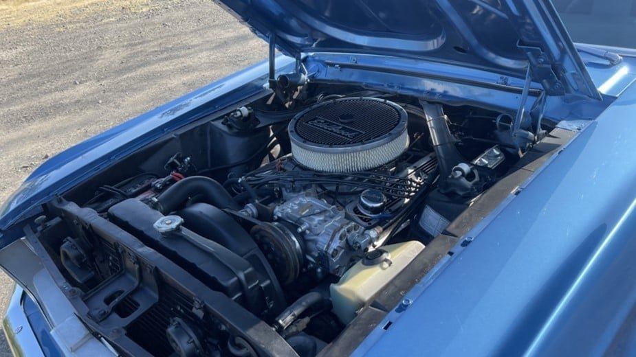 Powered by the reportedly original 289cid V8 engine mated to a three-speed automatic transmission, this Mustang delivers the authentic driving experience that enthusiasts crave. The engine bay features finned Edelbrock valve covers and an air cleaner.
