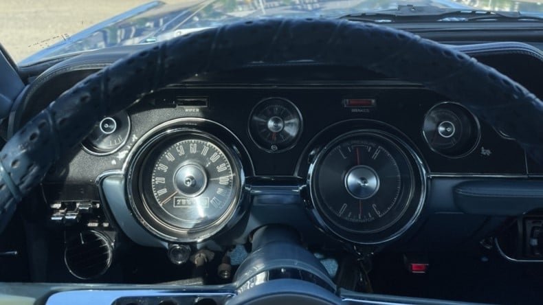 This 1967 Ford Mustang Coupe is in the captivating hue of Acapulco Blue (code D) with chrome bumpers and rocker moldings. The seller states that under previous ownership, the exterior was refinished in its original color (code D), making it a true representation of its factory glory.