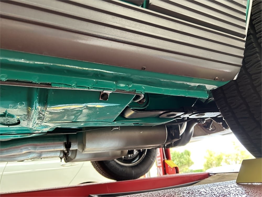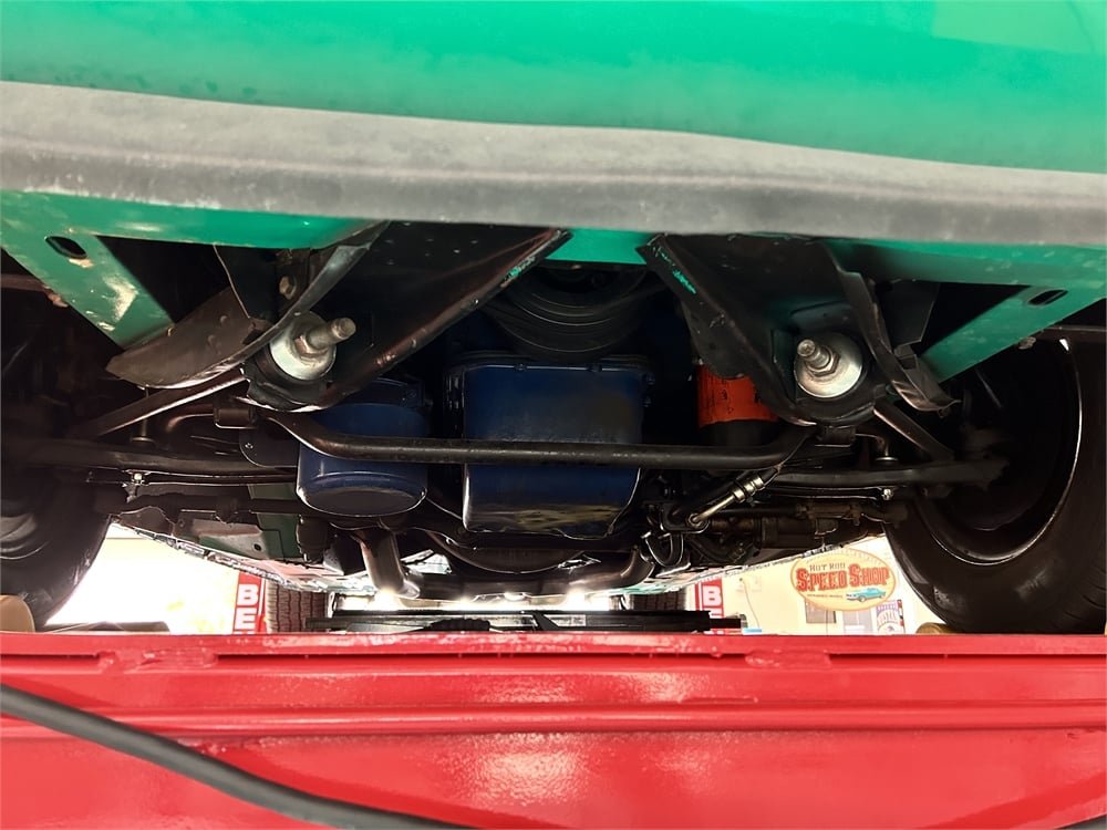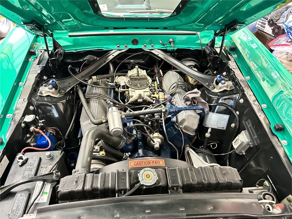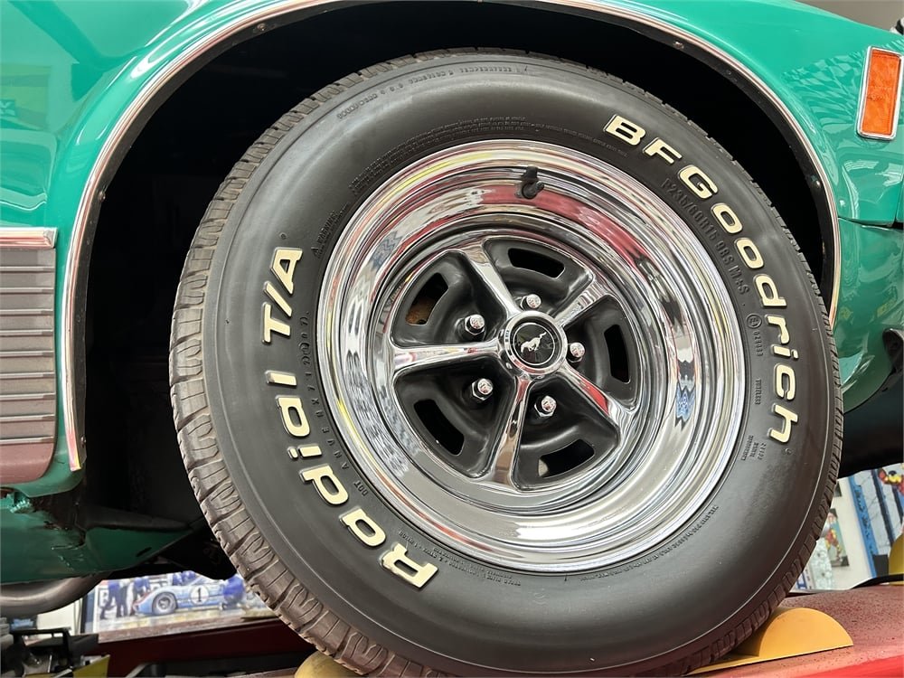 The “R-code” 428 Cobra Jet comes with a Shaker air induction system. While Marti Report documentation shows this Mach 1 was originally manufactured with a C6 three-speed automatic transmission, power is now sent to the rear wheels via a console-shifted Toploader close-ratio four-speed manual and 3.50:1 Traction-Lok limited-slip differential.