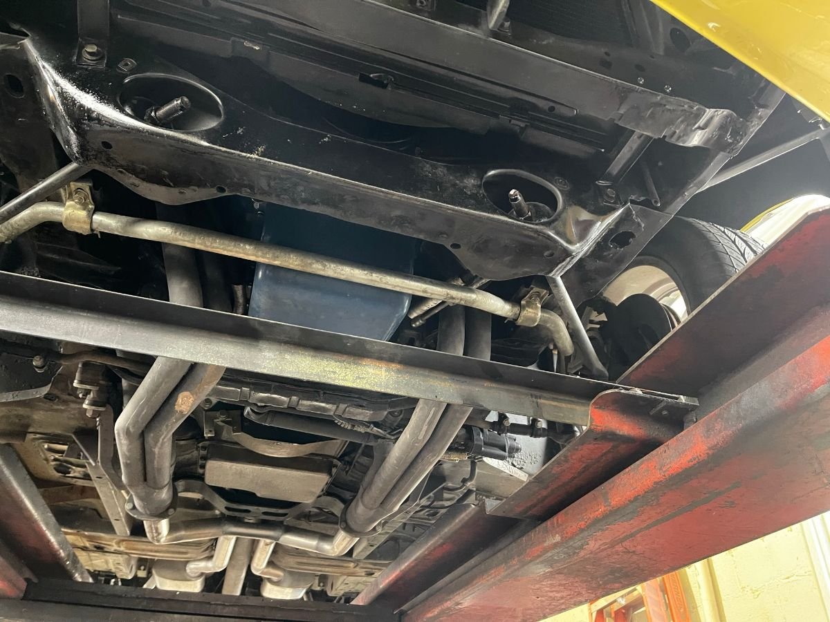 Underneath the Torino you’ll find an independent front suspension and solid rear-drive axle with Auburn 3.73:1 rear differential. Braking is provided by power four-wheel Baer discs. The selling dealer states that a Global West upper control arm kit and NOS lower control arms with new bushings have been installed. Additional undercarriage photos can be seen in the image carousel on the auction page.