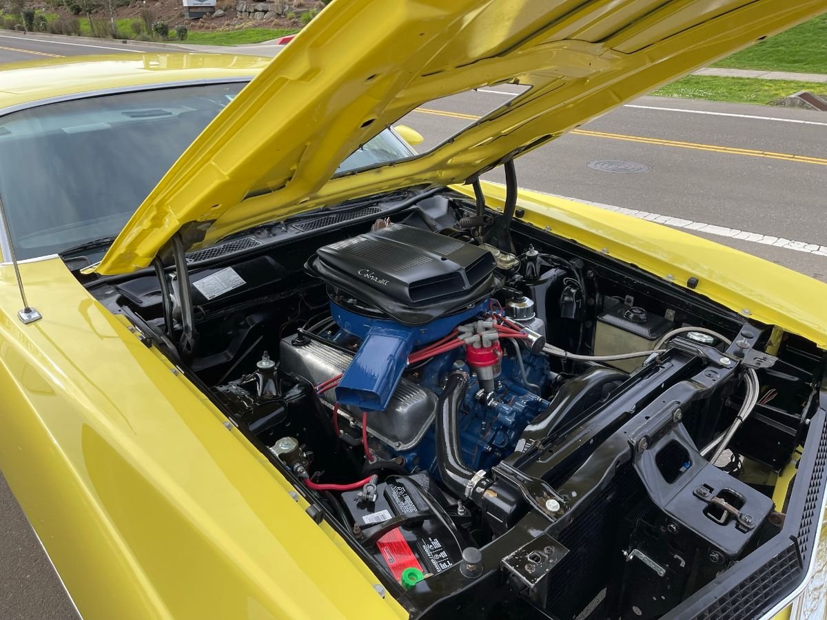 This Torino Cobra has its original 429 Cobra Jet with ram air. Engine features include finned aluminum valve covers, D0OE-R heads and CJ rods, factory Quadrajet carburetor, and full-length tubular headers.
