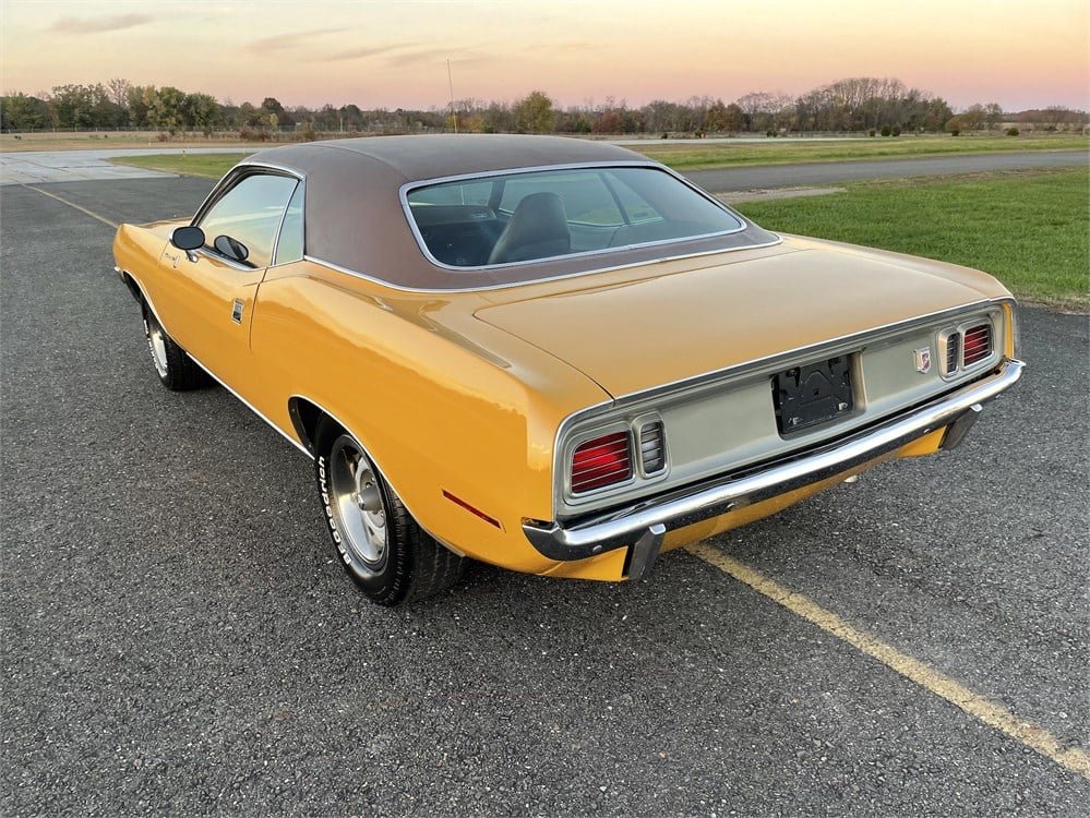 Featured on AutoHunter, the online auction platform driven by ClassicCars.com, is this restored 1971 Plymouth Barracuda Gran Coupe. One of 1,615 built, this Barracuda is powered by a reportedly numbers-matching, original 383ci V8 backed by a rebuilt three-speed automatic transmission with Slap-Stik shifter. Features include power steering, power brakes, air conditioning, vinyl top, bucket seats, AM radio, remote driver-side mirror, and overhead console. Finished in Bahama Yellow with a dark gold vinyl top over tan leather interior, this Barracuda comes from the selling dealer with Quebec, Canada documentation.