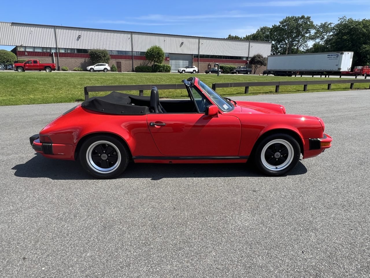 The 1985 Porsche Carrera Cabriolet we are featuring as our AutoHunter Spotlight is almost a clone of the car featured in the aforementioned film. Finished in Guards Red with a manual black cloth convertible top over a black leather interior, it is a perfect 1980s icon.