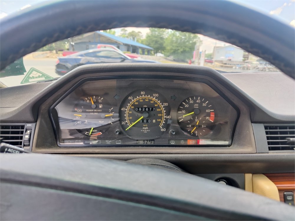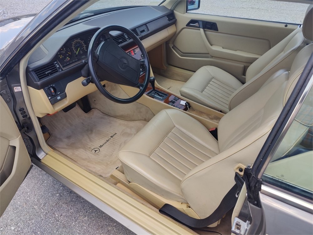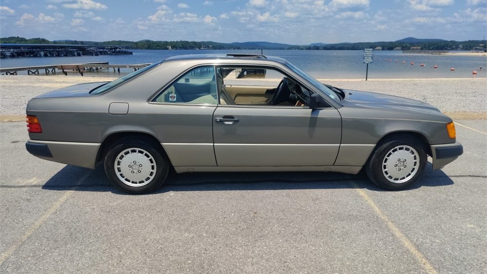 The car spent its entire life in Arkansas and received over $5,000 in engine and suspension updates in 2011. Equipment includes automatic climate control, a Becker radio, woodgrain interior trim, and Continental tires. It is finished in its original Mercedes Anthracite Gray paint and beige over a tan MB-Tex vinyl interior, this C124 300CE is now offered by the selling dealer with service records, a clean CARFAX report, and a clear title.