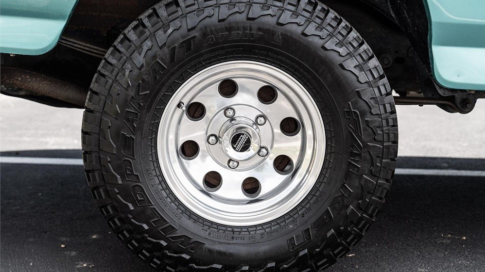 Accompanying this Bronco’s Tobago Green Clearcoat body is a complementary white factory hardtop. Additional treatment includes chrome brightwork, sideview mirrors, and a spare tire on a swing-away carrier. There are some blemishes around the body per the seller.