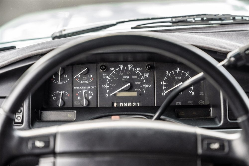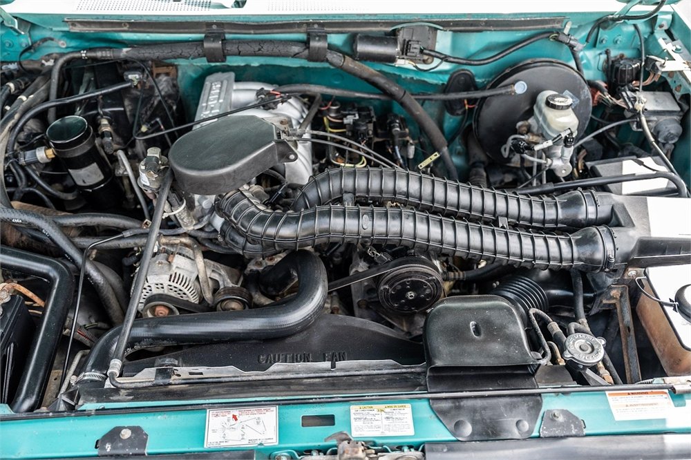 The Windsor 5.8-liter V8 had factory ratings of 210 horsepower and 325 lb-ft of torque when new. It was rebuilt nine years and about 12,000 miles ago, and it sends power to all four wheels through a rebuilt four-speed automatic transmission and a dual-range transfer case. The CARFAX report shows some of the vehicle’s service history including a radiator replacement.