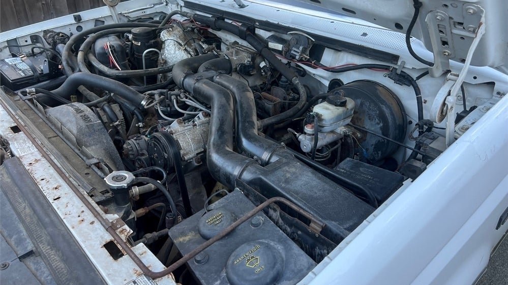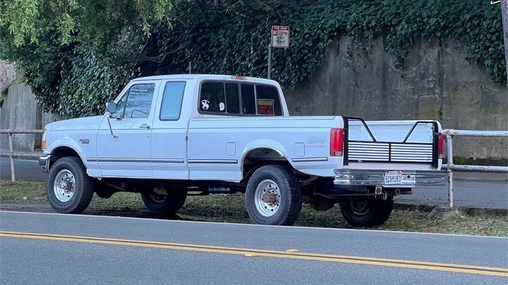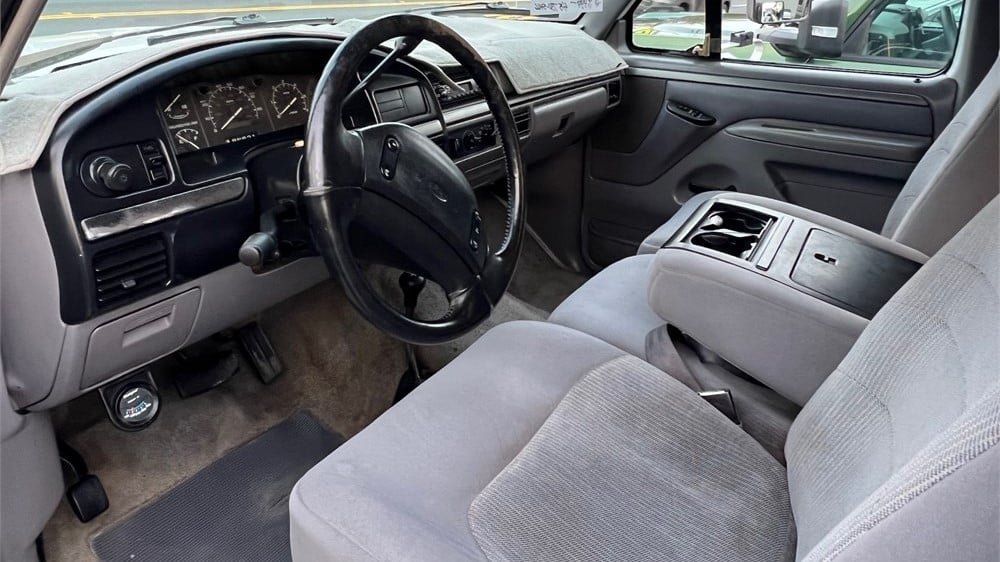 Coated in an Oxford White paint finish, this workhorse comes from the F-Series’ ninth generation, which had a lifespan from model years 1992 through 1997. Even though its bodywork was modernized and the front and rear fascias were streamlined, the chassis was essentially a carry-over of the F-Series pickups dating as far back as 1980. Exterior design was crafted by Jack Telnack, who served as the global Vice President of Design at Ford between 1980 and 1997.