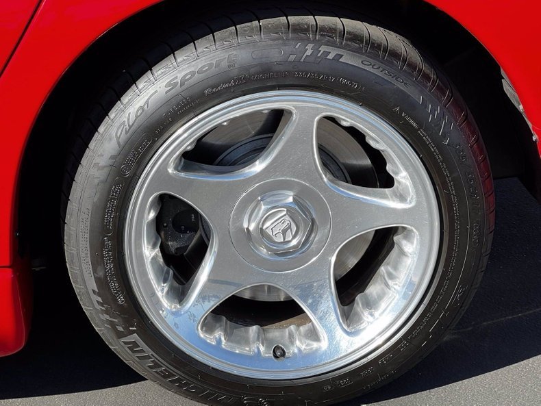 This Viper GTS coupe’s Viper Red exterior features projector halogen headlights, fog lamps, integrated rear spoiler and dual, center-mounted stainless steel exhaust outlets.