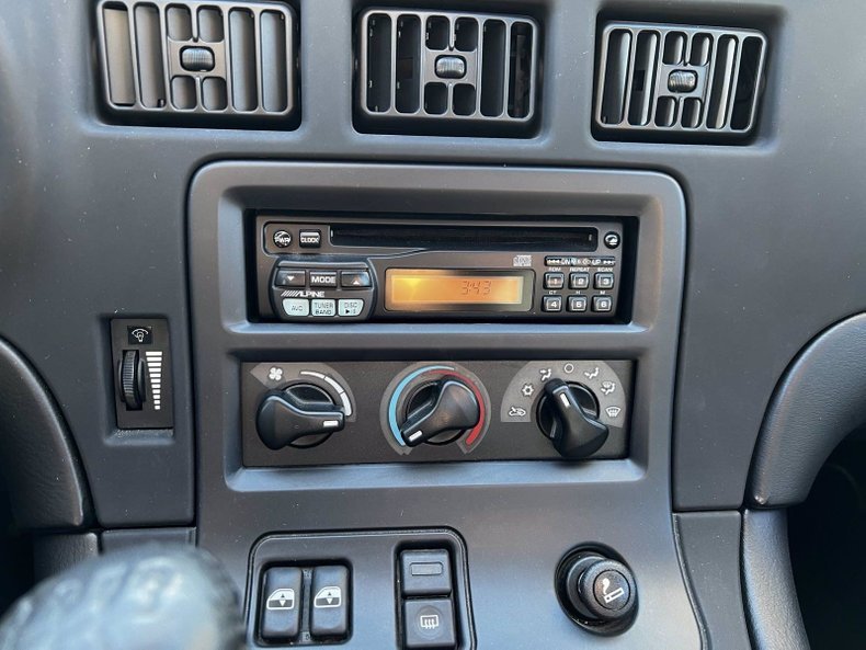 The two-seat cockpit is fitted with black leather high-back bucket seats with matching components. Amenities include air conditioning, power windows and door locks, adjustable pedals, remote keyless entry, tilt steering wheel and AM/FM/CD radio.