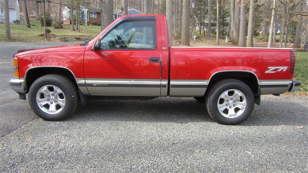Commonly known as the last of the General Motors “OBS” or “Old Body Style” generation, this platform (dubbed the GMT400) first debuted in model year 1988. The design language was a distinct shift from the previous square-body look. A mid-cycle refresh was carried out in 1995 that brought redesigned sideview mirrors and new safety equipment like four-wheel anti-lock brakes. Standard daytime running lights were added the following year.